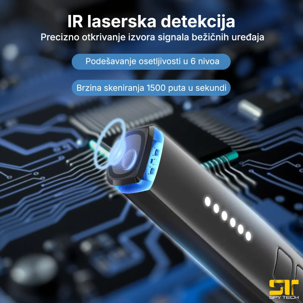 Detektor prisluškivača Scan T400 omogućava brzo i jednostavno otkrivanje svih vrsta skrivenih prisluškivača, špijunskih kamera i GPS trackera u prostorijama i automobilima. Lako se koristi i pruža efikasnu zaštitu vaše privatnosti uz zvučnu i vibracionu signalizaciju. Poboljšajte svoju privatnost i zaštitite se od prisluškivanja i tajnog nadzora na jednostavan način!