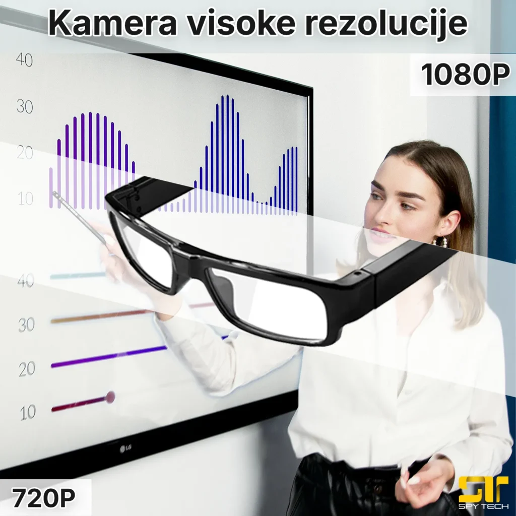 Ugao snimanja 80 stepeni: Sa širokim uglom snimanja od 80 stepeni, kamera na naočarima pokriva veliki deo prostora, osiguravajući da ništa ne prođe nezabeleženo. Ova karakteristika omogućava snimanje širokog područja iz jednog ugla, što je idealno za nadzor većih prostorija ili praćenje aktivnosti u celom prostoru.
